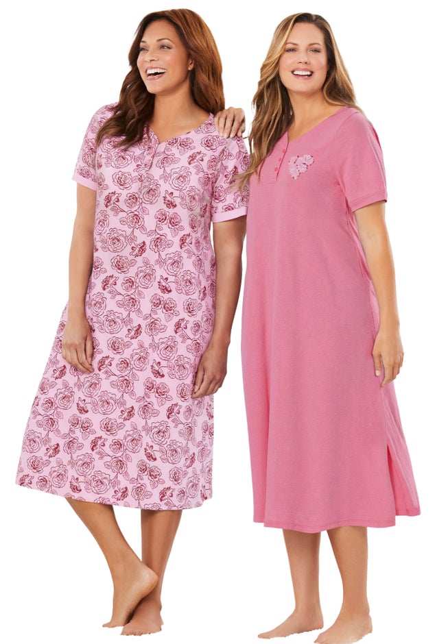 Double up on these top-selling sleepshirts with a three-button Henley placket that can be buttoned up or left open. Short sleeves and a longer length give just enough coverage but still provide comfort while you sleep. You’ll love the pure cotton knit fabric that’s extra breathable and washes like a dream.