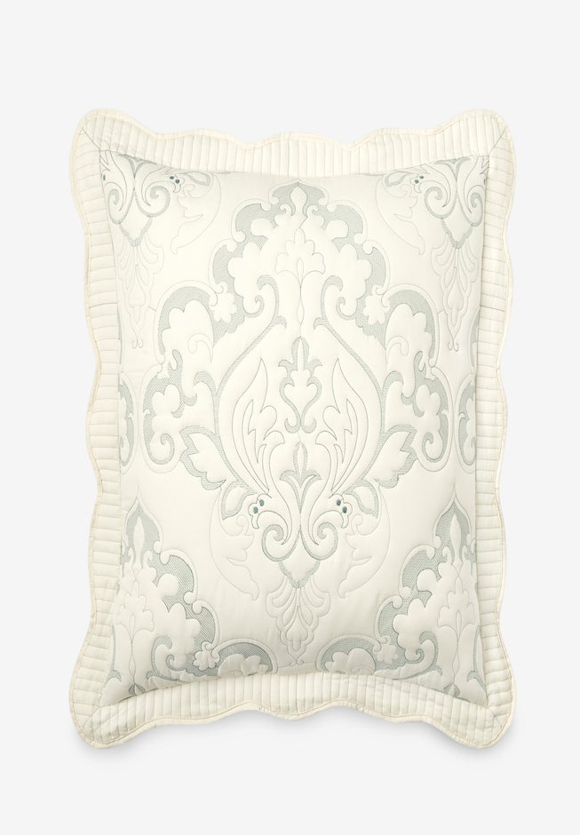 The square version of our Amelia sham features meticulous allover embroidery in a damask motif and a quilted scalloped border. Made with superior softness, you'll love it in the guest and master bedroom.