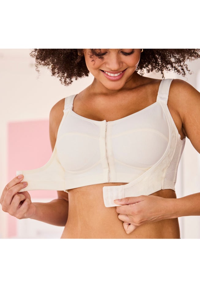 The Comfort Choice® Posture Perfect Bra is a two-in-one posture bra designed to deliver wire-free lift, enhanced bust support, and all-day comfort. Featuring a front-close design with a built-in front sling, it provides secure shaping and extra support where you need it most. Seamed soft cups enhance your natural shape, while wide shoulder-seam straps help reduce strain and promote better posture. Made from a breathable nylon/spandex blend, this supportive posture bra moves with you while maintaining its shape for confident, everyday wear.