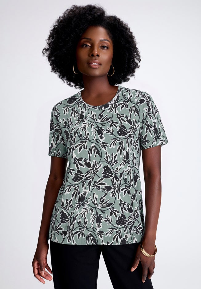 The Jessica London women's plus size Fine Gauge Collection Crewneck Shell is a fabulous, versatile classic that completes every wardrobe. Features a straight silhouette that flatters every figure and a crew neckline that conceals bra straps. Wear it on its own or as a twinset with the coordinating Jessica London Fine Gauge Collection Cardigan.