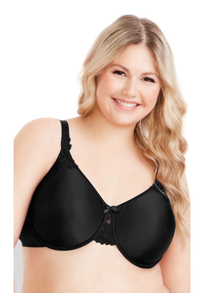 Keep things classic with the Minimizer Underwire Bra. This black bra supports your curves with its underwire and full cups, lined with power mesh for a smoothing, compressing effect. Key Features Include:- Full coverage soft teardrop cups- Padded quad hook and eye closure to back- Adjustable shoulder straps- Built-in underwire support- Elastic to under band for additional stretch and comfort- Power mesh lining and wings to smooth and compress- Crochet floral lace detailing with center front bow accentYou'll be excited by your everyday staples with a pair of cheeky black briefs.