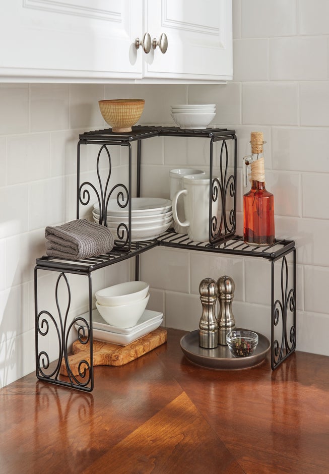 Organize your kitchen & maximize your space with this decorative collection which adds charm to the room and complements any decor. This 2-tier corner shelf makes use of empty corners to create storage.